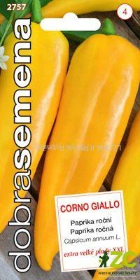 Corno Giallo - extra velké plody se silnou a šťavnatou stěnou. Tradiční španělská odrůda pěstovaná po celém světě ve dvou barevných formách – červené a sytě žluté. Odrůda je vhodná pro skleníky i polní pěstování. Vyniká nejen velkými plody, ale i vysokým výnosem. Pro klíčení je důležitá stabilní teplota 20-24 stupňů celsia. Nejlépe se jí daří v záhřevné, plně osluněné lokalitě.