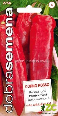 Corno Rosso - extra velké plody se silnou a šťavnatou stěnou. Tradiční španělská odrůda pěstovaná po celém světě ve dvou barevných formách – červené a sytě žluté. Odrůda je vhodná pro skleníky i polní pěstování. Vyniká nejen velkými plody, ale i vysokým výnosem. Pro klíčení je důležitá stabilní teplota 20-24 stupňů celsia. Nejlépe se jí daří v záhřevné, plně osluněné lokalitě.