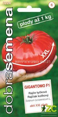 GIGANTOMO F1 - obří biftekové rajče dorůstající hmotnosti 700 – 1000 g. Plody překvapí nejenom velikostí, ale i plnou chutí a bohatým aromatem. Odrůda vhodná na záhon i do fóliových krytů. Dodržujte vyrovnaný vláhový režim, předejdete tak praskání plodů.