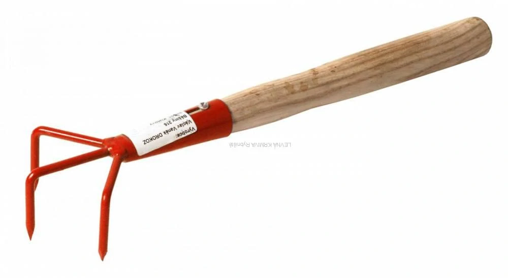 Drápek tříhrotý s násadou pro kypření půdy na záhonech a ve skleníku. Pracovní část je z kovu.