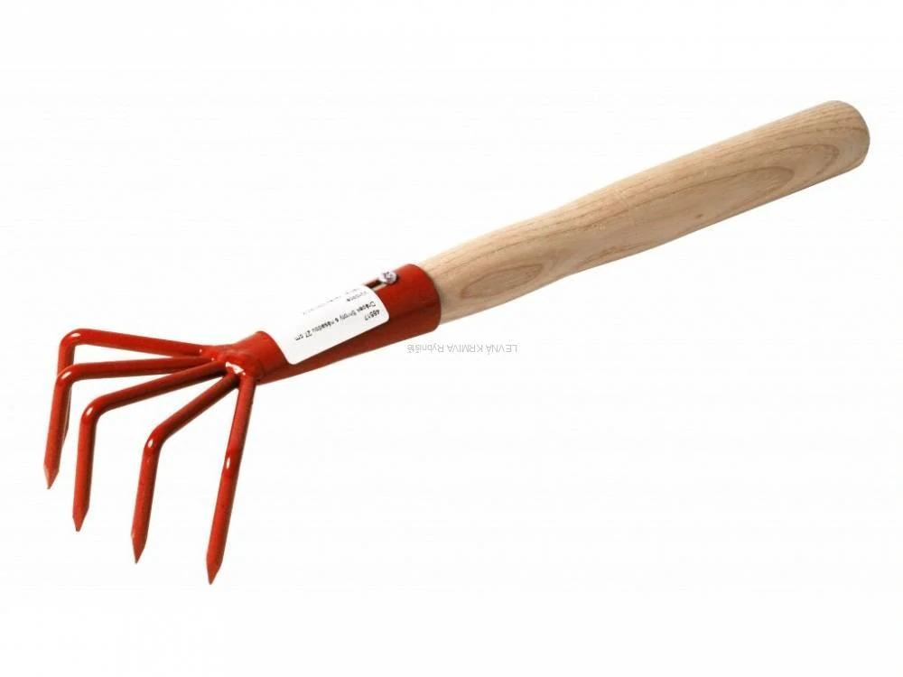 Drápek pětihrotý s násadou 27 cm, pro kypření půdy na záhonech a ve skleníku.
