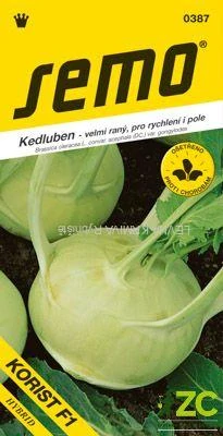 KORIST F1 (kód 0387) – velmi raná odrůda bílé kedlubny populární u profesionálních zahradníků. Je určená pro polní pěstování i rychlení. Ploše kulovitá bulva má sněhobílou dužninu s jemnou, delikátní chutí. Nemá sklon k dřevnatění. Vegetační doba je 65 dní od výsadby. Můžeme vysévat od ledna do poloviny července. Vysazujeme do sponu 30 x 30 cm.