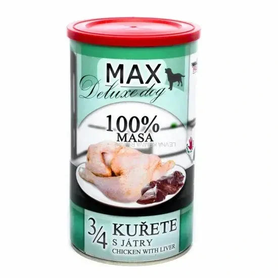 - MAX Deluxe Dog 3/4 kuřete s játry, konzerva 1200g