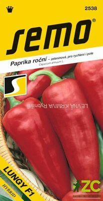 LUNGY F1 – velmi raný hybrid s dobrým zdravotním stavem. Je vyššího vzrůstu, plody jsou delší jehlance, v technické zralosti zelené, v botanické tmavě červené. Plody jsou velmi vhodné i ke sterilaci, kdy se chovají jako pravé kapie. Pěstitelé určitě ocení univerzálnost hybridu jak po stránce pěstitelské, tak z hlediska použití plodů.