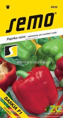 SASKIA F1 – hybrid vyznačující se zvláštní, hráškově zelenou barvou plodů. Plody jsou velké, obdélníkového tvaru s tlustou stěnou a jemnou chutí. Rostlina je vysoce adaptabilní na různé pěstitelské podmínky. Vzrůst rostlin je vyšší, barva plodů v botanické zralosti je tmavě červená.