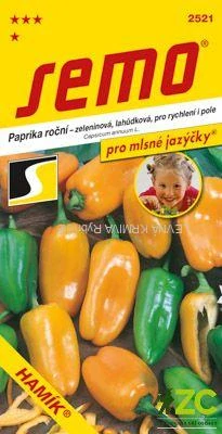HAMÍK (kód 2521) – kolekce PRO MLSNÉ JAZÝČKY– lahůdková „baby“ paprika s menšími, sytě oranžovými plody lahodné chuti. Plody, které jsou téměř bez semen, se konzumují i sterilují celé, zásadně v botanické zralosti. Při dostatečném zásobení živinami poskytují rostliny středního vzrůstu velký počet plodů. V chladnějších oblastech je nutné rychlení, aby většina plodů dozrála do botanické zralosti (sytě oranžová barva). Tuto odrůdu nabízíme také v BIO kvalitě!