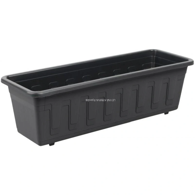 Plastový truhlík na květiny, pro lepší růst a snadnější zálivku se doporučuje provrtat dno pro odtok vody a kombinovat s miskou pod truhlík.
